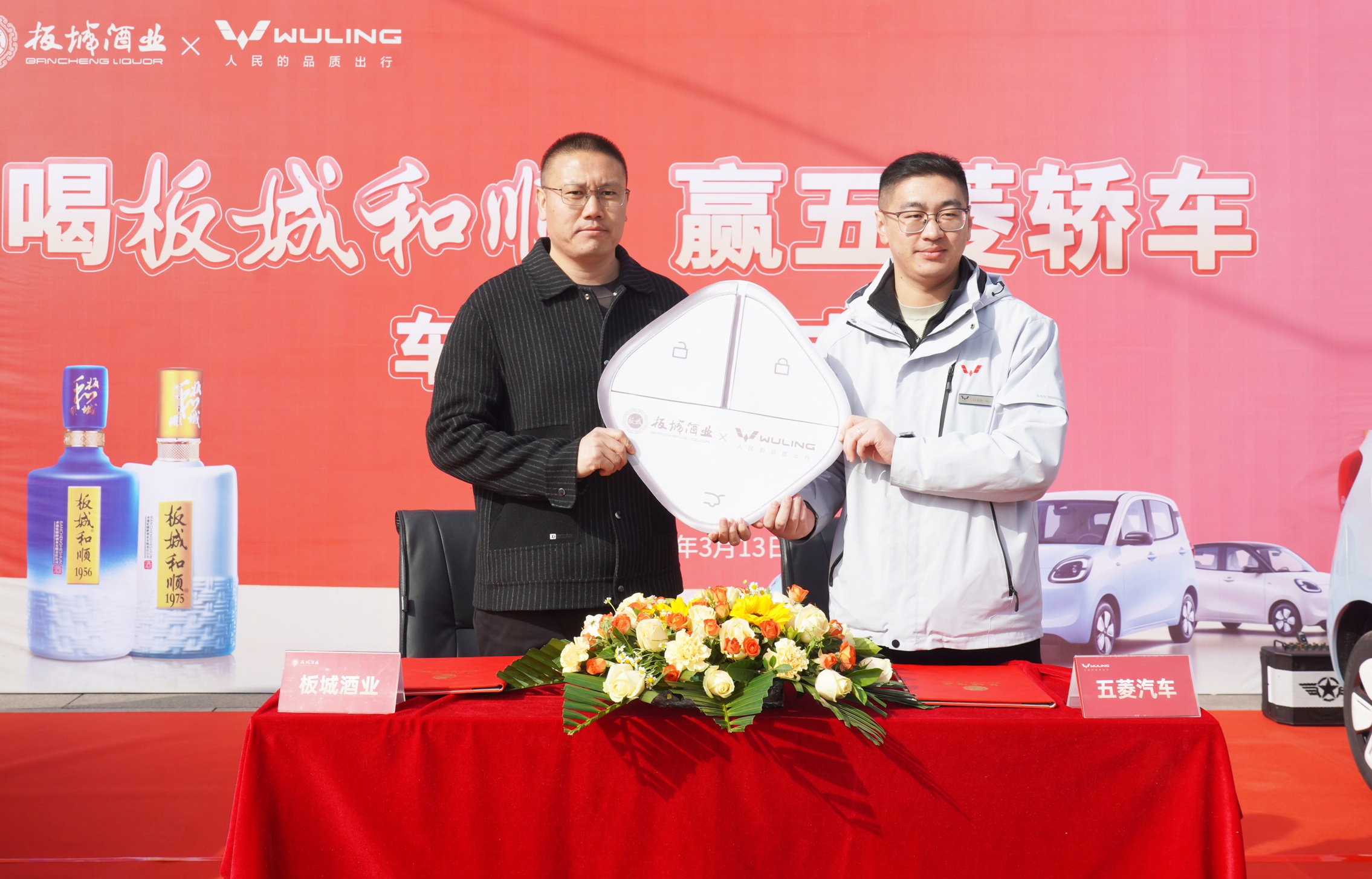在活動現(xiàn)場,板城酒業(yè)銷售市場總監(jiān)王曉波與五菱汽車承德駿盛4S店市場總監(jiān)呂呈濤共同簽署了《五菱宏光MINIEV汽車交付協(xié)議》。