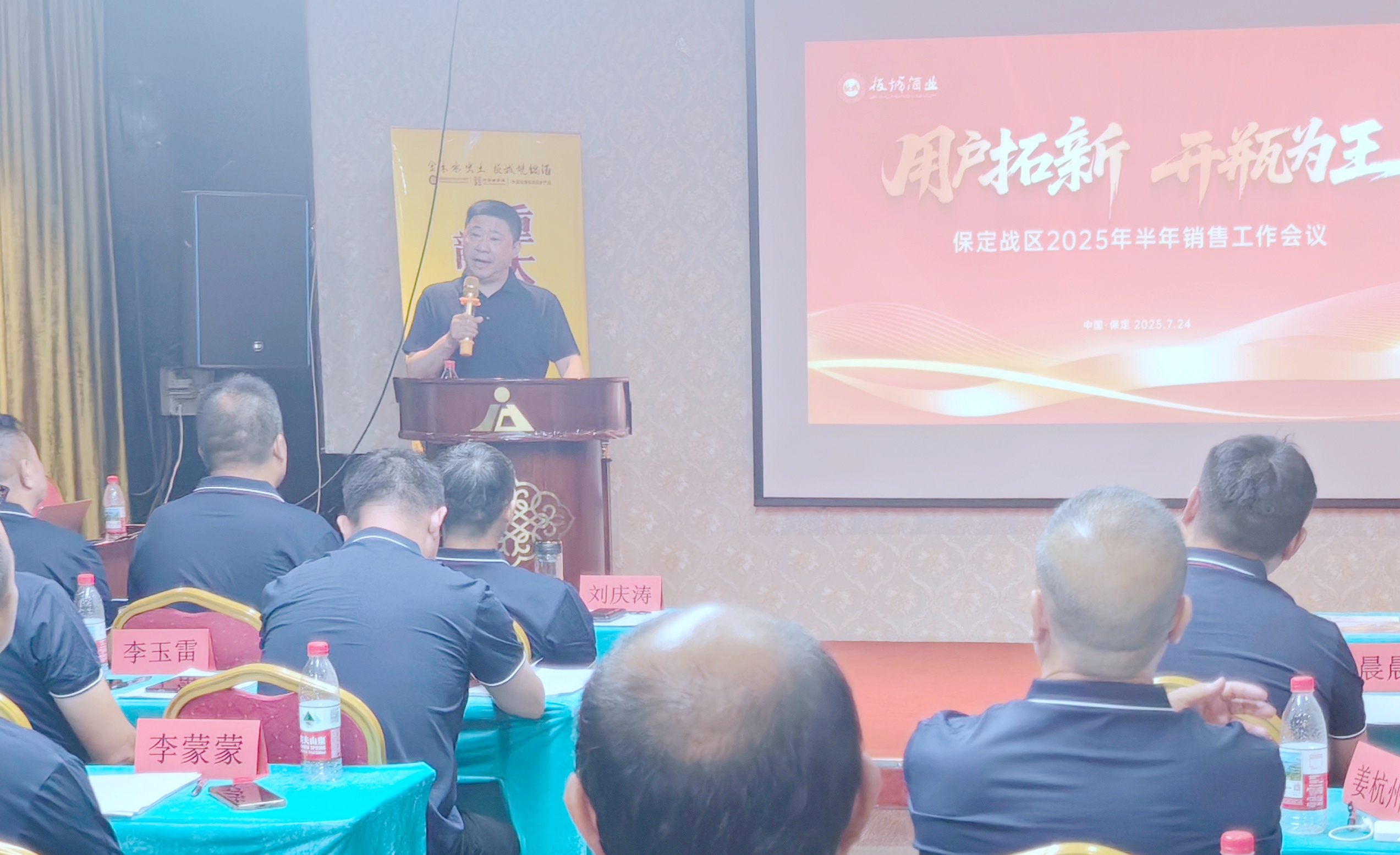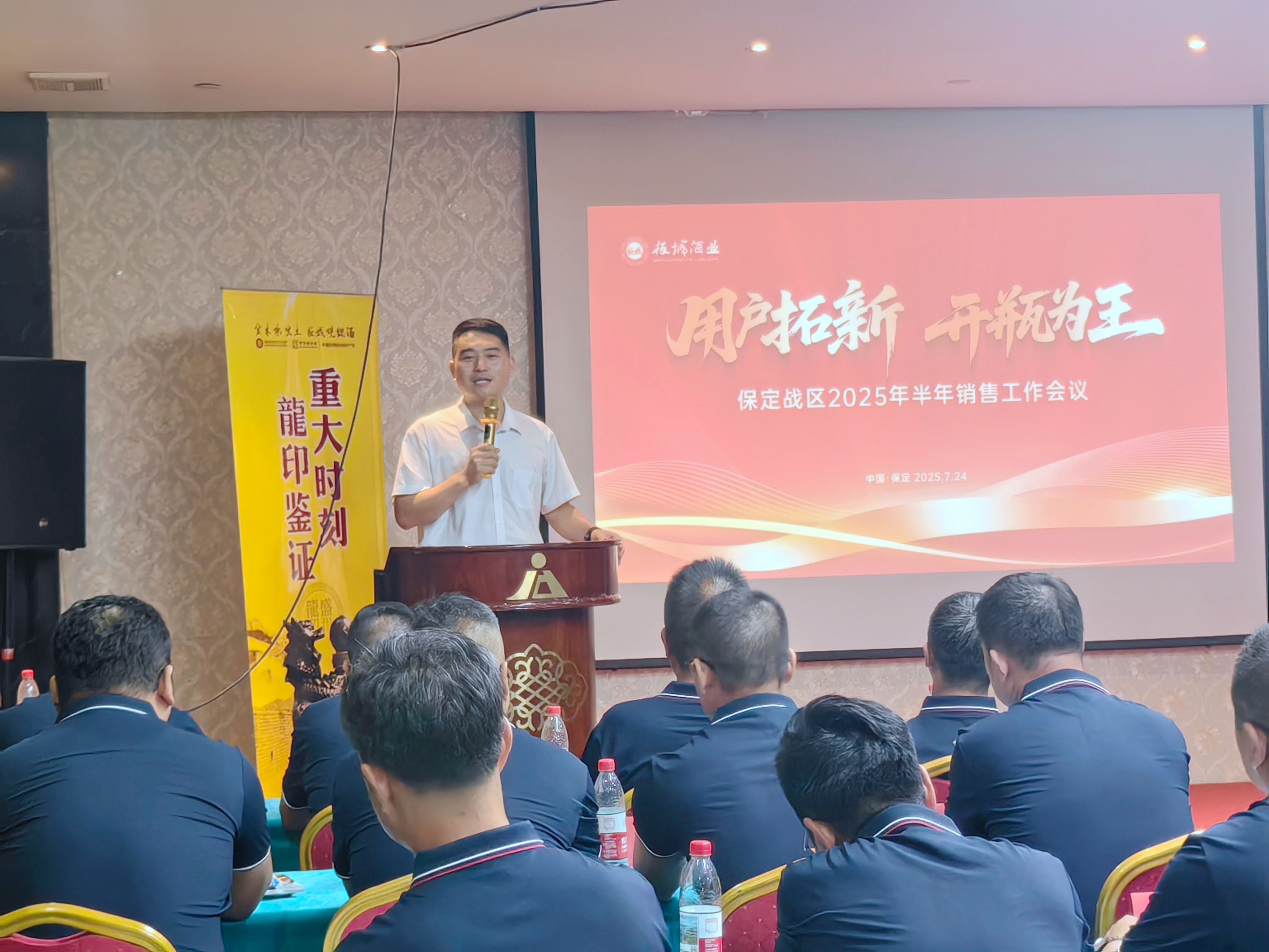 板城酒業(yè)銷售常務(wù)副總經(jīng)理許樹鋼,保定戰(zhàn)區(qū)經(jīng)理賈亞飛,業(yè)務(wù)經(jīng)理、業(yè)務(wù)團(tuán)隊及經(jīng)銷商、團(tuán)購商齊聚一堂,共商發(fā)展大計,吹響2025年下半年度的沖鋒號角。