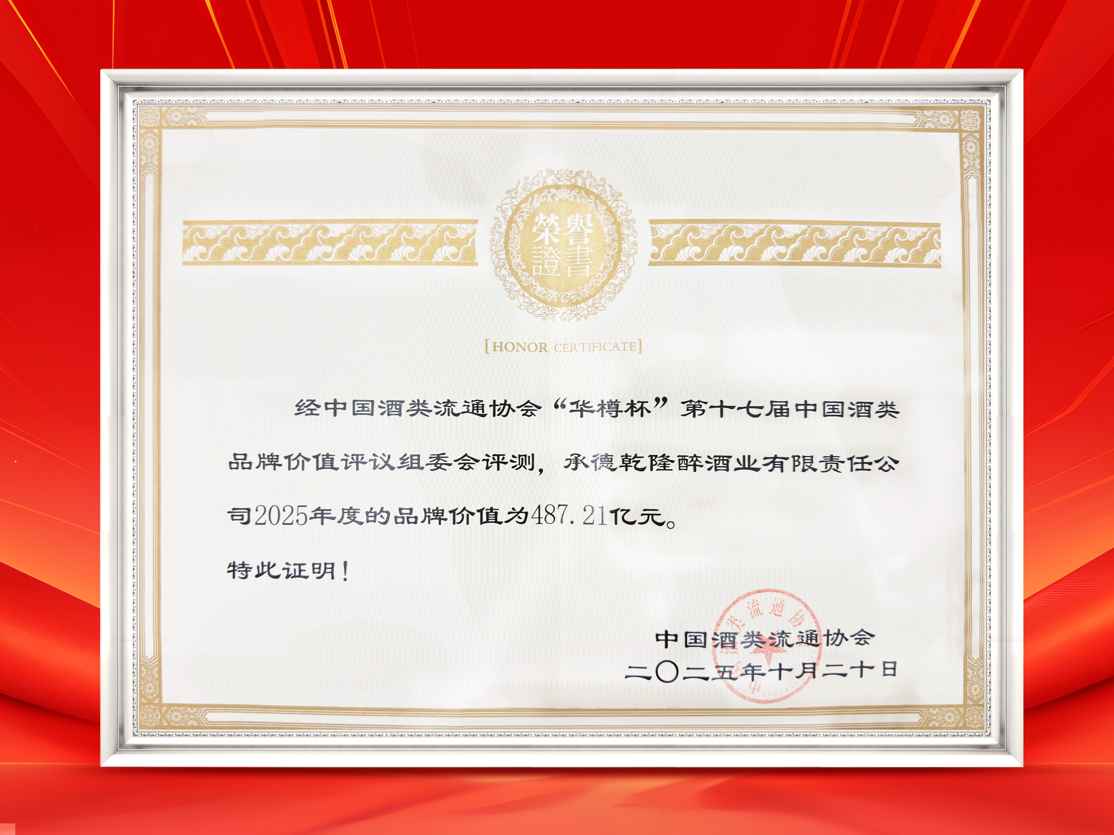 榮譽加冕,再創(chuàng)輝煌。在今日揭曉的第十七屆“華樽杯”中國酒類品牌價值評議中,承德乾隆醉酒業(yè)有限責任公司(板城酒業(yè))表現(xiàn)搶眼,品牌價值高達487.21億元,較去年實現(xiàn)顯著增長,位列中國白酒行業(yè)第25位,較去年提升五位。這一成績不僅彰顯了企業(yè)強大的綜合實力,更體現(xiàn)了行業(yè)專家與市場對板城品牌的高度認可。